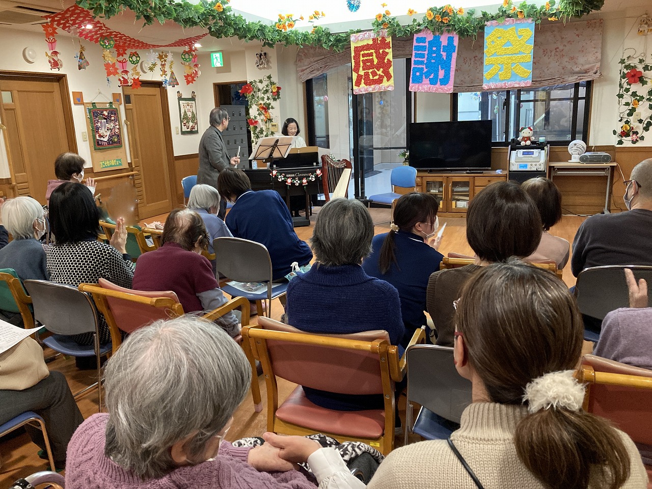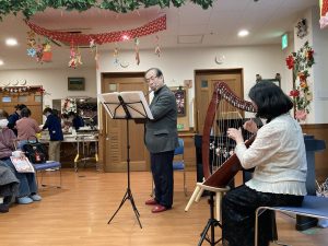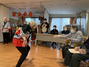 今回は家族の皆様や家族有志の演奏会の他に、ばか面愛好会の方をお呼びして船橋の伝統芸能「ばか面」を披露していただきました。