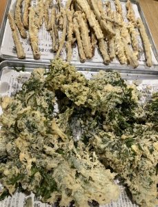 ディアファームで収穫した春菊のサクサク天ぷらと、