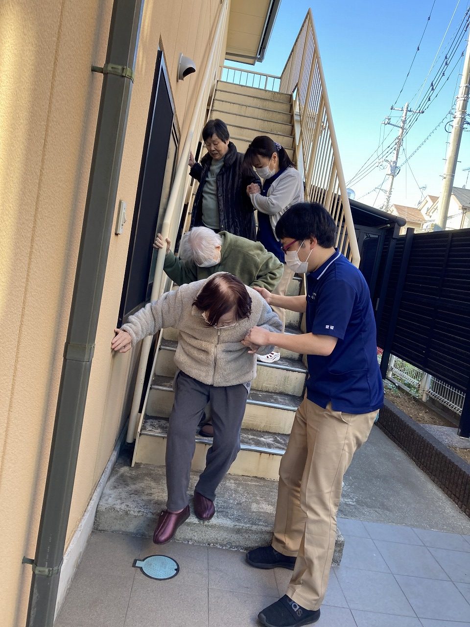 新年最初に行った防災訓練、今回はエレベーターを使わないでいかに避難をするのかを考えて行いました。